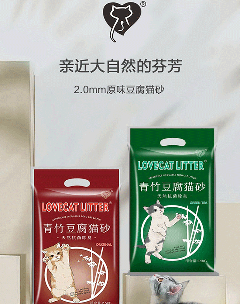 商品名称:爱宠爱猫猫砂 love cat猫砂豆腐猫砂原味绿茶植物猫砂除臭易结团可冲马桶 原味青竹豆腐猫砂 5斤*6包