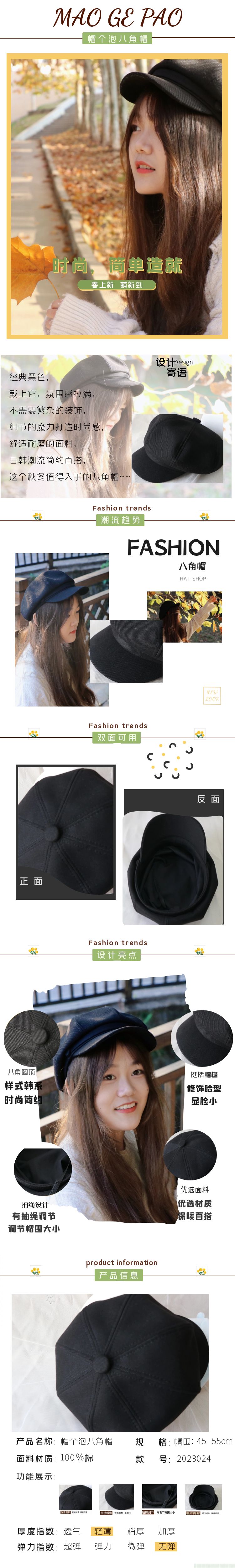 • 商品名称:复古黑色八角帽女秋冬显脸...