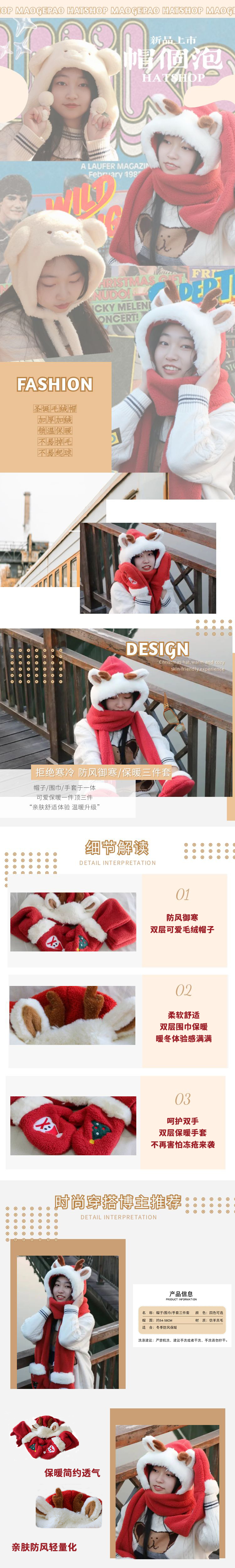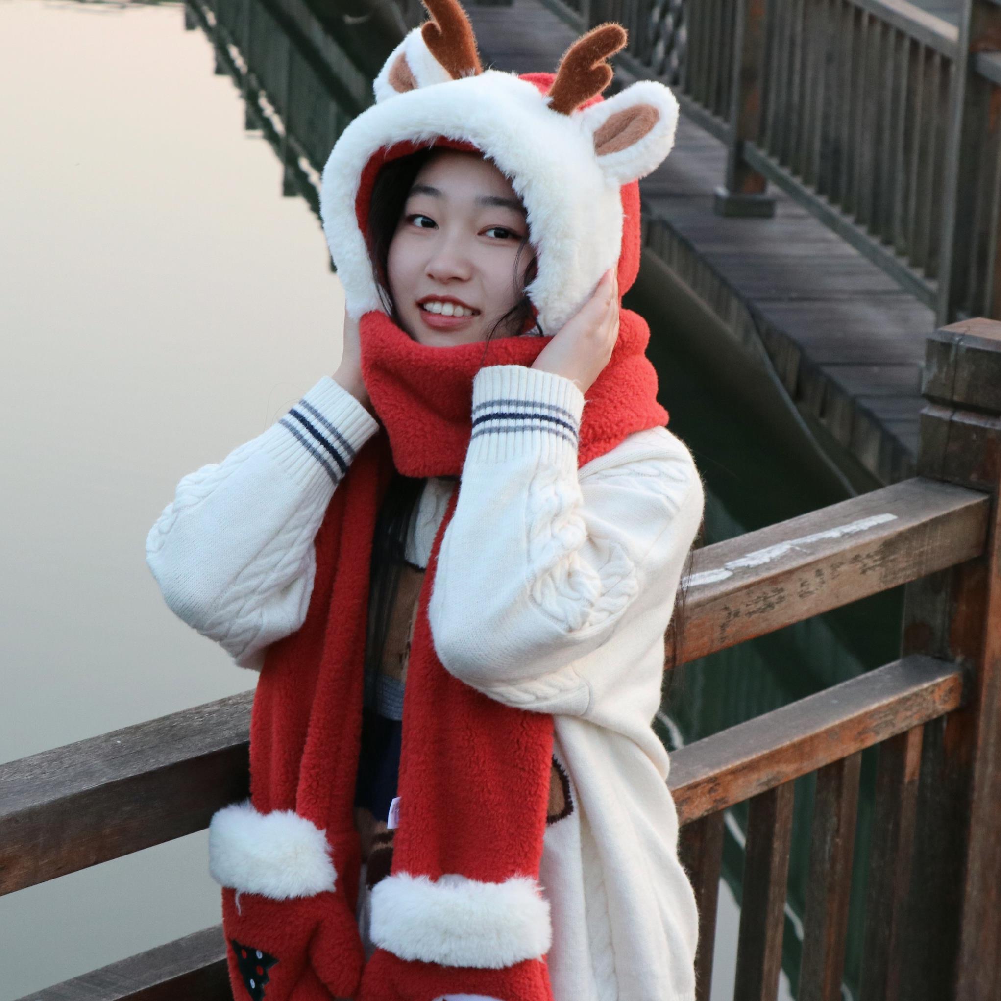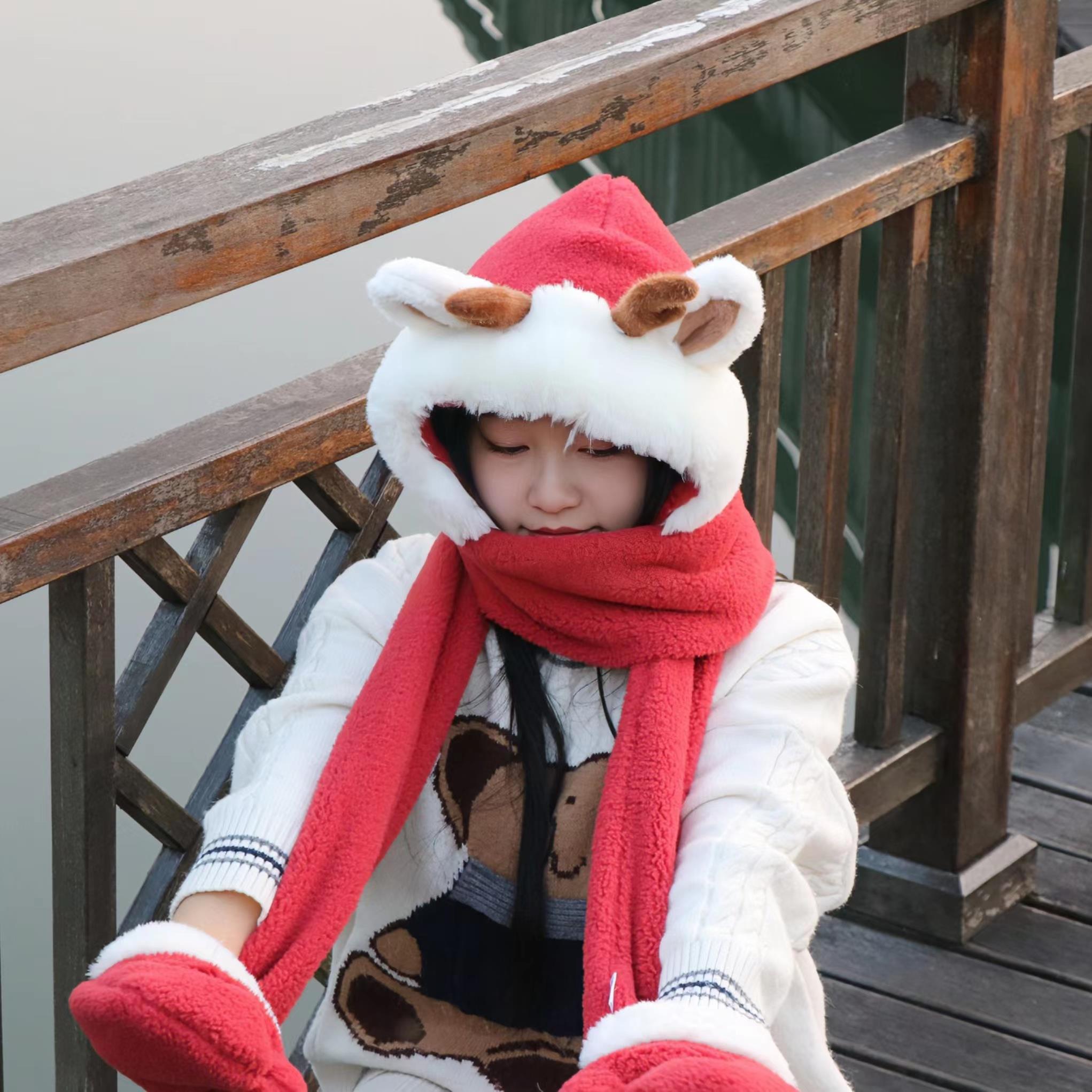 动漫周边 > 其它 > 可爱圣诞礼物新年红色氛围感鹿角毛一体绒帽子围巾手套防寒护耳连体围脖