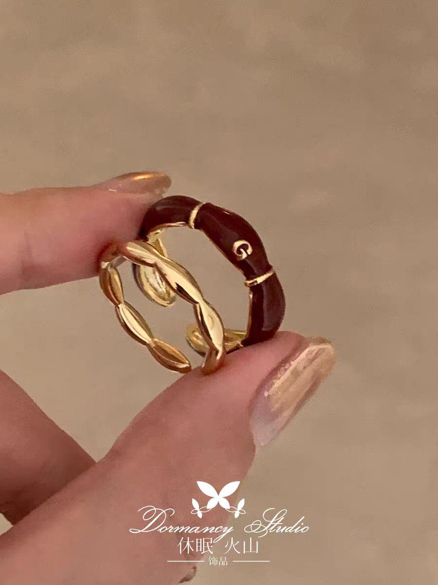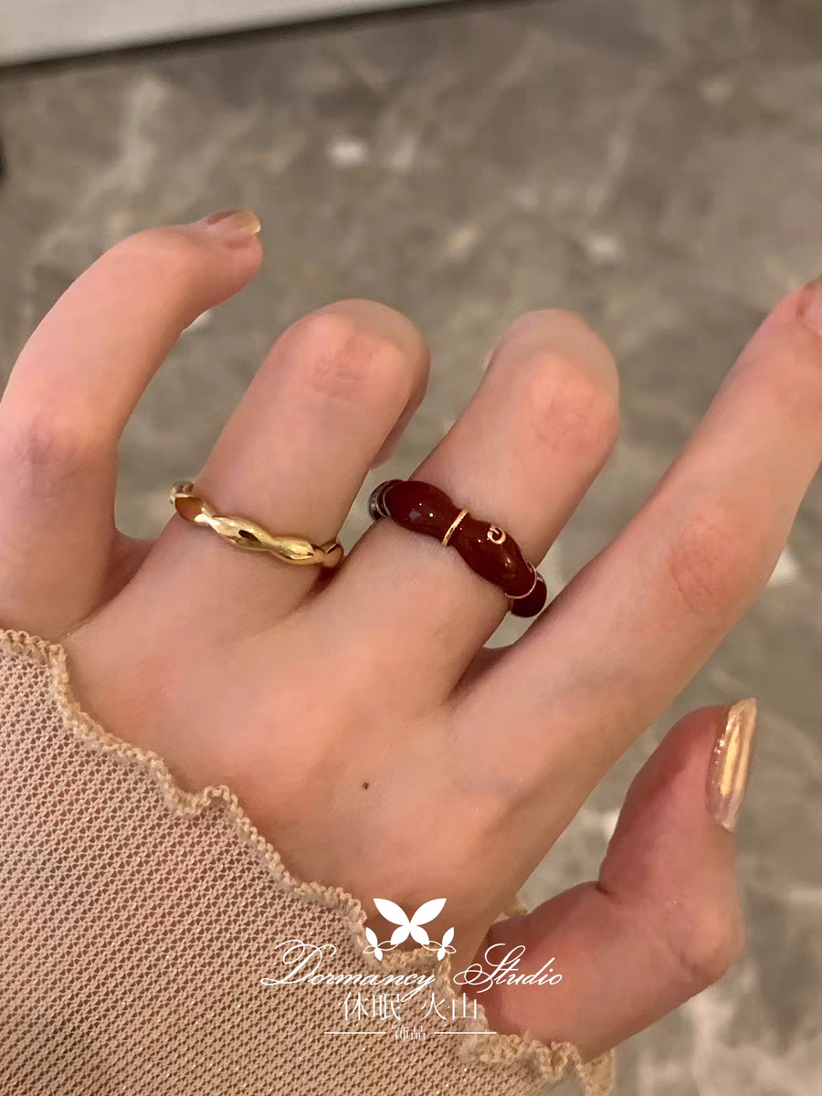 颜色分类: 金色竹节戒指 一枚 酒红滴釉戒指 一枚
