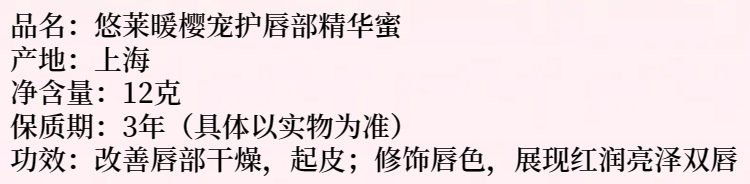 • 商品名称:悠莱润唇膏暖樱宠护唇部精...