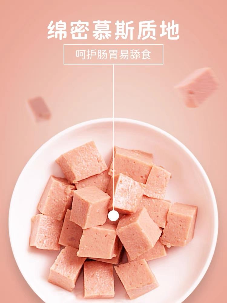 【细腻丝滑,一口融化】好原料,成就好味道,严选食材,鸡肉/牛肉选自一级原料供应商;绵密质地,入口即化的美味,软与柔的碰撞,衍生出微妙的新食感;科学配方,健康又美味,科学调制,多种营养融合成一罐,汪星人无法抵抗的营养美味;18道检验,品质信赖,上司公司自有工厂生产,18道检验,全面质量管控。