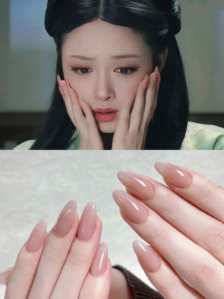 甄嬛华妃同款冰透裸色手工穿戴甲