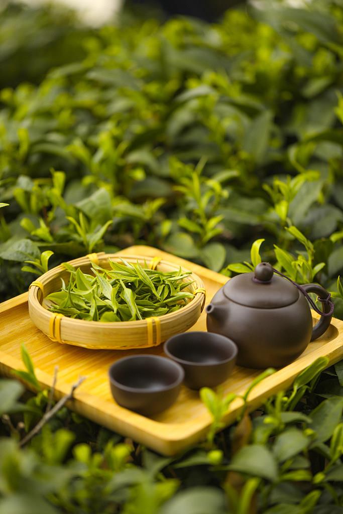 绿茶,山茶科山茶属灌木或小乔木植物,绿茶形态自然、色泽鲜绿,采取茶树的新叶或芽,经杀青、整形、烘干等工艺制作而成,保留了鲜叶的天然物质;茶叶尖而细,表面光滑;开白色花,花朵较小,呈多边形;花期10月-次年2月。绿茶因其干茶呈绿色、冲泡后的茶汤呈碧绿、叶底呈翠绿色而得名。