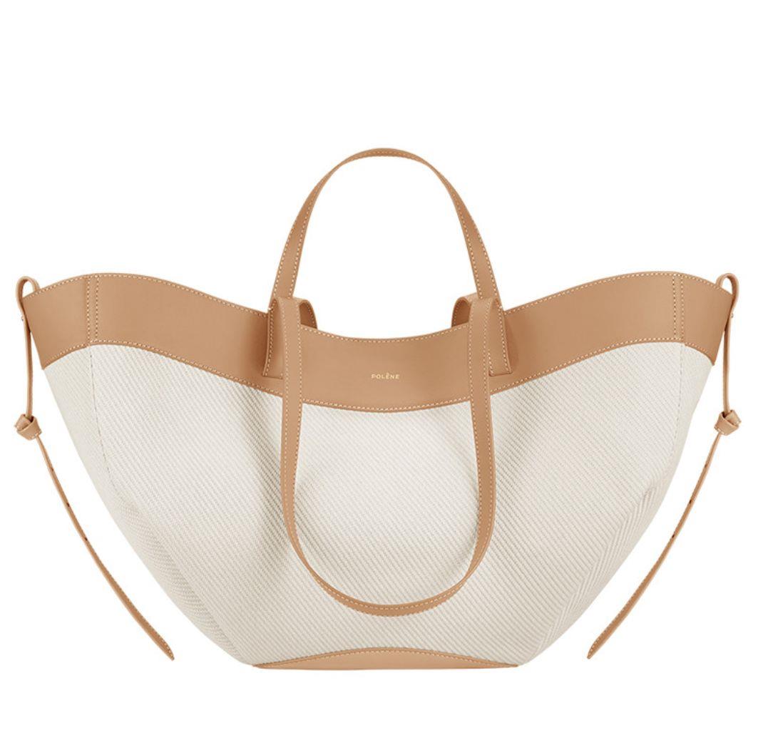 这是一款结构主义手袋。柔美的褶皱和圆滑的廓形由起伏的线条衔接而成。手袋的设计使手袋既可以像篮子一样两侧敞开,并且两侧带有带子点缀;也可以像花朵一样两侧内折,并两侧带有交叉带子点缀。带有长短两组手柄,可肩背或手提。