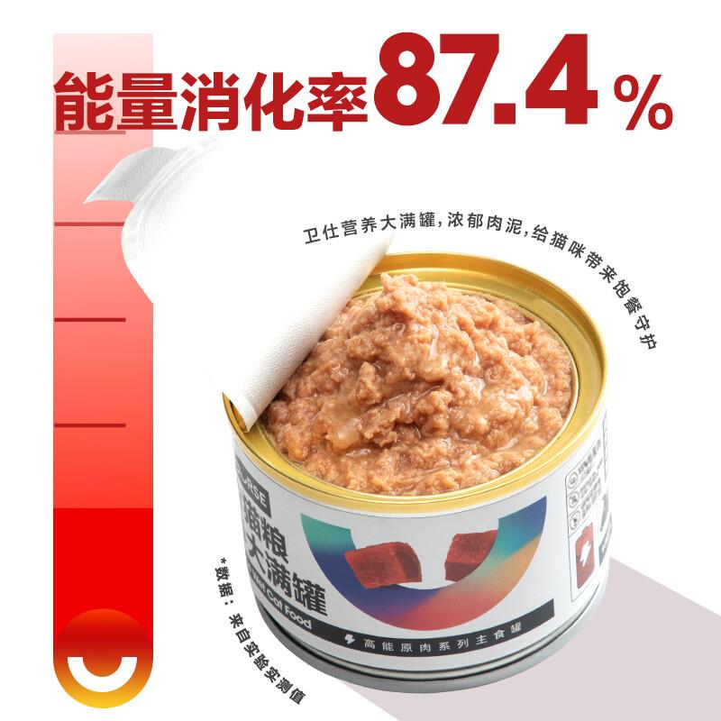99%都是肉,还有1%矿物微凉营养,能量消化率高达87.4%,0淀粉、0谷物、0胶质、0诱食剂!纯纯的美味诱惑,满足猫咪成长营养需求。