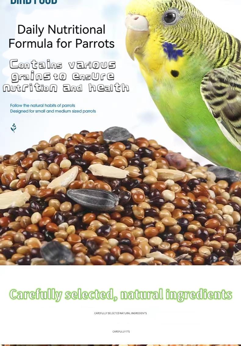 Pure natural grain grains, without preservatives, include seeds, vegetables, nuts, grains, fruits, plant protein extracts/fats, sugars, and other ingredients, suitable for various small and medium-sized parrots. Such as Xuanfeng, tiger skin, peony, little sun, diamond, sunflower Flower and monk parrot.