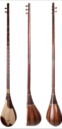 **特点**:弹布尔的音色深沉而富有表现力,适合演奏抒情的旋律和复杂的装饰音。演奏者通常使用一个拨片来拨动琴弦,同时用左手在品位上按压以改变音高。这种演奏方式使得弹布尔能够产生独特的滑音效果,为音乐增添了一种神秘的韵味。