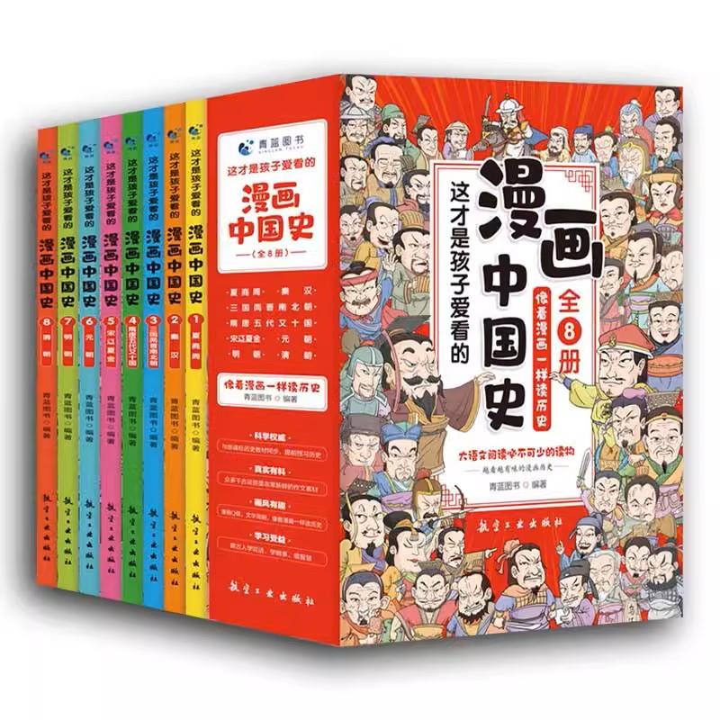 全套书共分8册,贯彻历史教材,将中国历史上的各个朝代以漫画的形式呈现在孩子眼前。文字生动有趣、深入浅出,故事性强,讲述了精彩的中国史;插图以动漫风格为主,可爱风趣,辅以简明的、幽默的对话,让孩子以看漫画的心情读历史,笑着就能把历史记住,并从中获取古人的经验、教训与智慧。