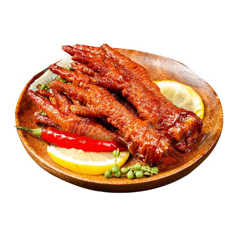 采用优质新鮮原料,通过精选、腌制、卤制、漫初等传统卤制工艺 精洗十多种天然植物香料精心肉制而成,该品輸嫩化渣、肉香丰鸿、余味烧峻、香入骨髓。是尽情玩游戏、酣畅追剧、旅游出行的美食伴侣.