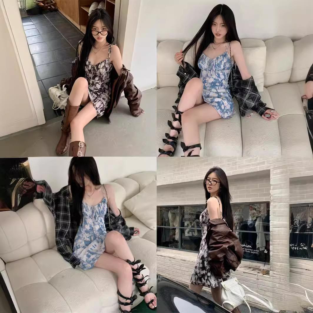 动漫周边 > 服饰 > 甜辣风碎花吊带连衣裙女夏季气质系带收腰气质裙子a字裙