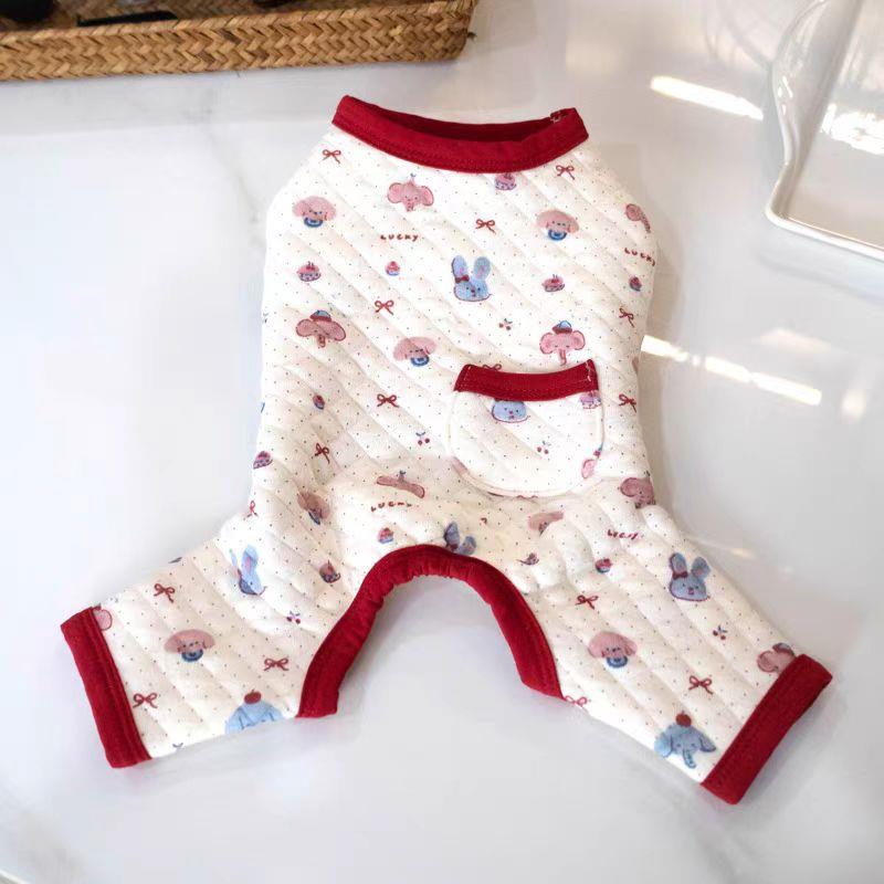 这款衣服专为秋冬季节设计,采用加厚婴儿棉的材质,为泰迪、比熊等小型犬种提供温暖舒适的穿着体验。它四脚衣马甲背心的款式,既保暖又方便狗狗活动,是居家或外出时的理想选择。