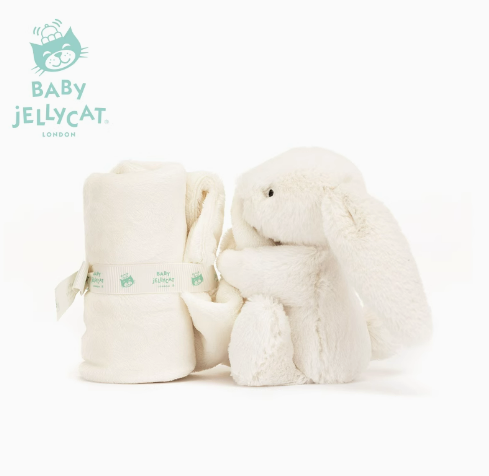 以下是英国Jellycat害羞乳白色邦尼兔安抚巾毛绒宝宝哄睡新生系列新品的商品介绍: 1. **品牌背景**: - Jellycat是1999年创立于英国伦敦的知名毛绒玩具品牌。其设计独特,以自然的动物形象和柔软的毛绒设计著称,在英国深受婴幼儿群体喜爱,后经社交平台传播在全球范围内受到广泛关注。 2. **外观设计**: - **颜色**:主体颜色为乳白色,这种颜色柔和、干净,给人一种温馨、舒适的感觉,适合宝宝的视觉偏好,也容易与宝宝的衣物和婴儿房的装饰相搭配。 - **造型**:邦尼兔造型经典可爱,有着长长的耳朵、圆润的身体和小巧的尾巴,模样憨态可掬。其整体线条流畅,比例协调,能够吸引宝宝的注意力,激发宝宝的好奇心。 3. **材质特点**: - **面料**:采用优质的毛绒面料,手感极其柔软,仿佛云朵般轻柔,能够给宝宝带来舒适的触感体验。这种面料经过严格筛选和处理,符合欧盟标准,安全无毒,即使宝宝长时间接触、抓握甚至啃咬,也不会对宝宝的健康造成危害。 - **填充**:内部填充饱满,使用的是玉米纤维等高质量填充物,不仅柔软度高,而且具有良好的弹性,能够保持邦尼兔的形状,让宝宝在拥抱、挤压时感受到舒适的回弹力。 4. **功能特性**: - **安抚作用**:对于新生儿和宝宝来说,柔软的安抚巾可以提供安全感和舒适感,帮助他们平静情绪,缓解焦虑,更快地进入睡眠状态。宝宝可以抓着邦尼兔的耳朵、四肢或身体,通过触摸和抓握来获得心理上的满足。 - **陪伴功能**:可以成为宝宝的亲密伙伴,陪伴宝宝成长。无论是睡觉、玩耍还是外出,宝宝都可以带着邦尼兔,让宝宝在陌生的环境中也能感受到熟悉的温暖和安慰。 5. **尺寸规格**:有多种尺寸可供选择,满足不同宝宝的需求和使用场景。例如,较小尺寸的邦尼兔适合宝宝抓握玩耍,方便携带;较大尺寸的则更适合宝宝拥抱和睡眠时使用。 6. **清洁保养**:清洁相对简单,建议使用温和的婴儿专用洗涤剂或肥皂,以手洗的方式进行清洗,避免使用机器烘干、干洗或漂白,以免损坏毛绒材质和造型。清洗后自然晾干,可保持邦尼兔的干净和柔软。 7. **包装设计**:通常采用精美的包装,无论是自用还是作为礼物送给亲朋好友的宝宝,都显得非常合适,具有较高的礼品价值。
