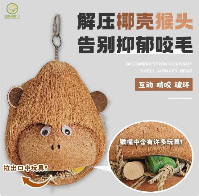 • 商品名称:鹦鹉啃咬玩具椰子猴头趣味...