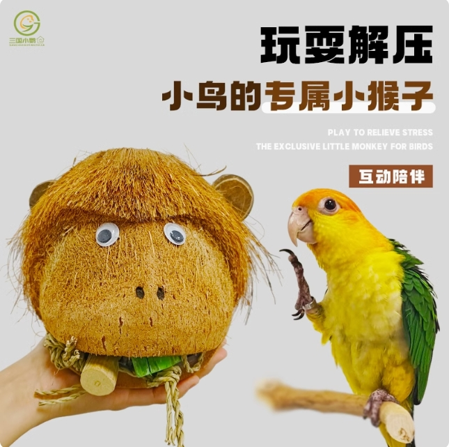 动漫周边 > 其它 > 鹦鹉啃咬玩具椰子猴头趣味啃咬寻食玩具鸟智力开发