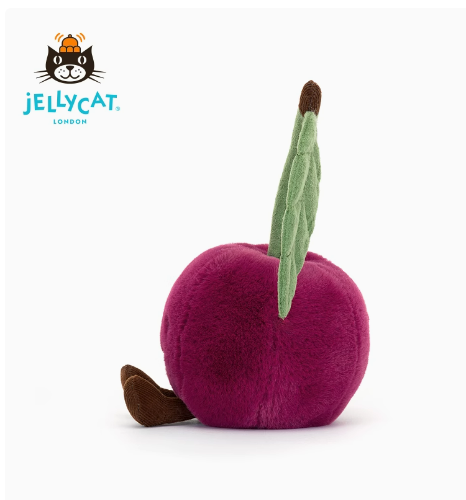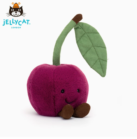 以下是英国Jellycat新款趣味单叶樱桃毛绒玩具的商品介绍: 1. **品牌背景**: - Jellycat是1999年在伦敦成立的毛绒玩具品牌,以独特设计、高品质材料和精湛工艺闻名。其每年都会推出多款全新设计,在全球范围内深受儿童和成年人喜爱。 2. **外观设计**: - **颜色**:主体颜色为鲜艳的红色,如同熟透的樱桃般诱人,颜色亮丽且均匀,能够快速吸引宝宝的注意力。 - **造型**:整体造型是一颗逼真的单叶樱桃,叶子部分呈现出鲜绿色,脉络清晰,栩栩如生;樱桃果实部分圆润饱满,曲线流畅,十分可爱。这种独特的水果造型设计,区别于传统的动物或人形毛绒玩具,充满了趣味性和新鲜感。 3. **材质特点**: - **面料**:采用超柔软的毛绒面料,手感极其舒适,轻柔顺滑,仿佛触摸到了细腻的云朵。这种面料不仅对宝宝的肌肤非常友好,不会产生任何刺激,而且不易掉毛,避免了宝宝吸入毛绒纤维的风险。 - **填充**:内部填充饱满,使用的是高质量的环保纤维填充物,具有良好的弹性和支撑性。填充材料分布均匀,使得樱桃玩具无论怎么挤压、揉捏,都能迅速恢复原状,保持其可爱的形状,同时也增加了玩具的耐用性。 4. **功能特性**: - **安抚作用**:柔软的材质和可爱的造型能够给宝宝带来安全感和舒适感,帮助宝宝缓解焦虑、不安等情绪。宝宝可以抱着樱桃玩具入睡,或者在哭闹时通过触摸和玩耍樱桃玩具来平静心情。 - **陪伴功能**:可以成为宝宝的亲密伙伴,无论是在家中、外出,还是在婴儿车上、床上,樱桃玩具都可以陪伴宝宝度过各种时光,让宝宝不再感到孤单。 - **认知功能**:鲜艳的颜色和逼真的水果造型,可以帮助宝宝更好地认识颜色和水果,促进宝宝的视觉和认知发展。宝宝在玩耍的过程中,可以通过观察、触摸等方式,增强对周围事物的认知和理解。 5. **尺寸规格**:尺寸小巧适中,方便宝宝抓握和携带。宝宝可以轻松地将樱桃玩具抱在怀里,或者拿在手中玩耍,同时也便于家长携带出门。 6. **包装设计**:包装精美,通常采用彩色纸盒或者透明塑料包装,能够让消费者在购买时清晰地看到玩具的外观。包装上还印有Jellycat的品牌标志和玩具的相关信息,既方便消费者了解产品,又增加了产品的辨识度和礼品属性,非常适合作为礼物送给宝宝。