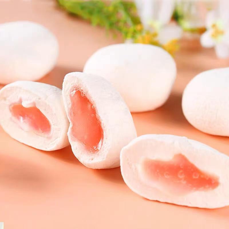 棉花糖,白色像云朵一样的糖,内含夹心,口感软糯
