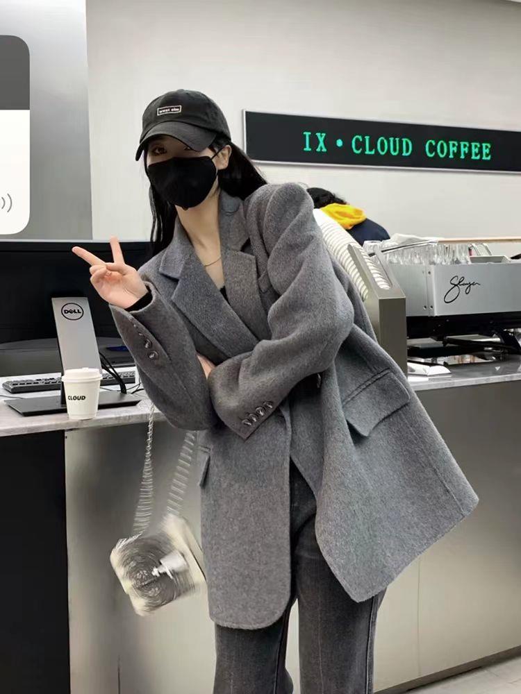 灰色西装呢子大衣女2024秋冬新款毛呢外套高级感小个子韩系短款