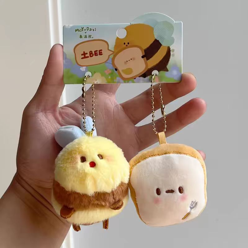 正版土Bee小蜜蜂毛绒钥匙扣,创意搞怪,情侣包包挂件,女生公仔小饰。