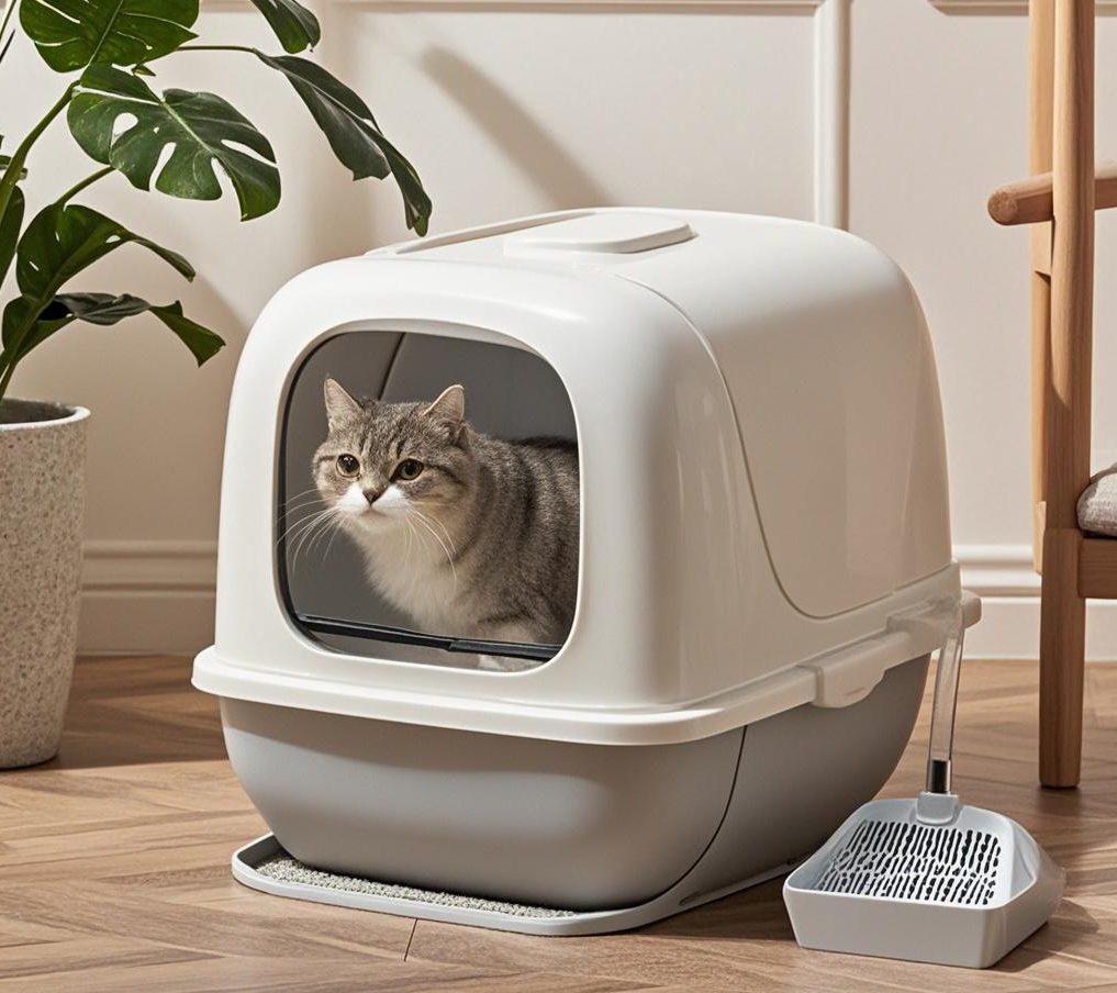 给你家猫咪一个干净、舒适、私密的如厕环境吧,选择我们的全封闭大号猫砂盆,就是选择一份贴心的呵护!快来下单吧~
