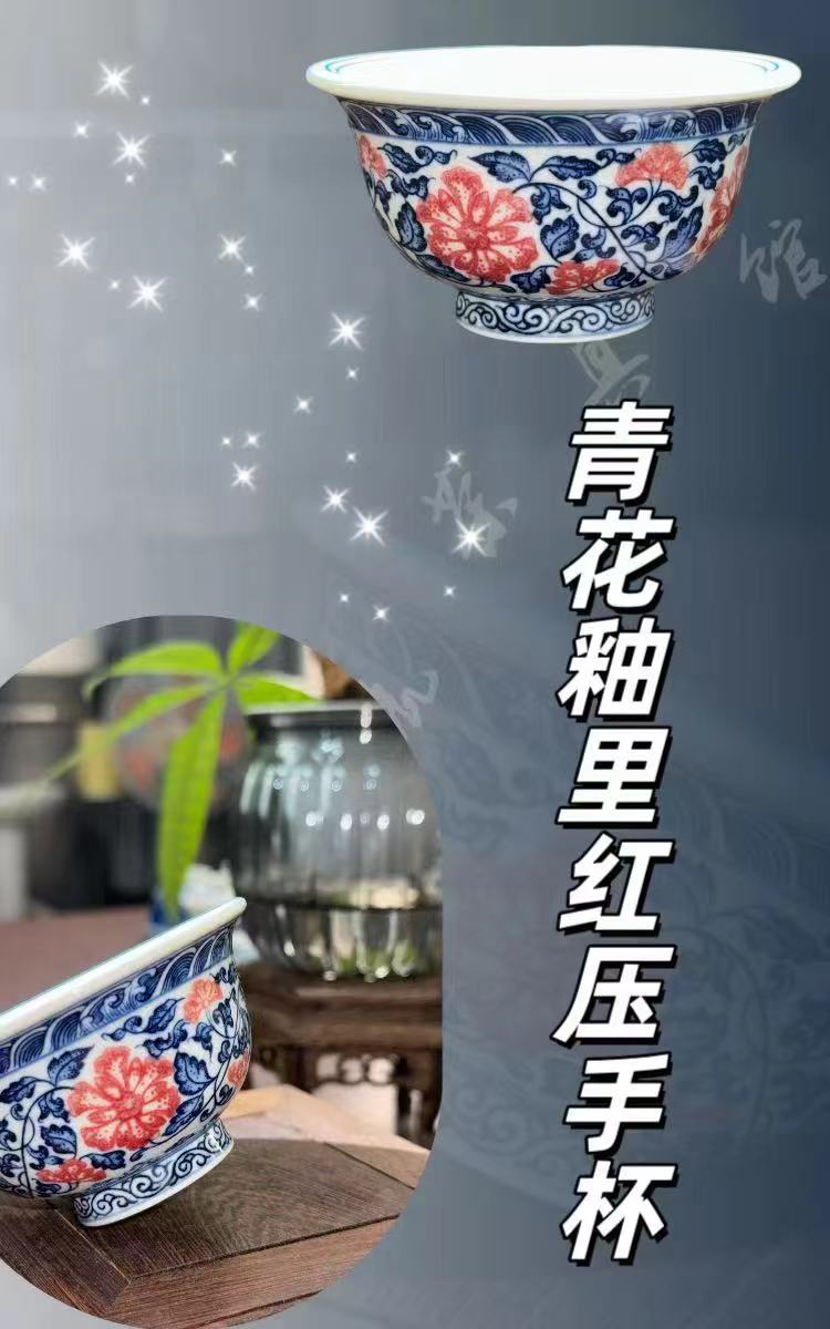 动漫周边 > 其它 > 手工手绘缠枝莲釉里红压手杯