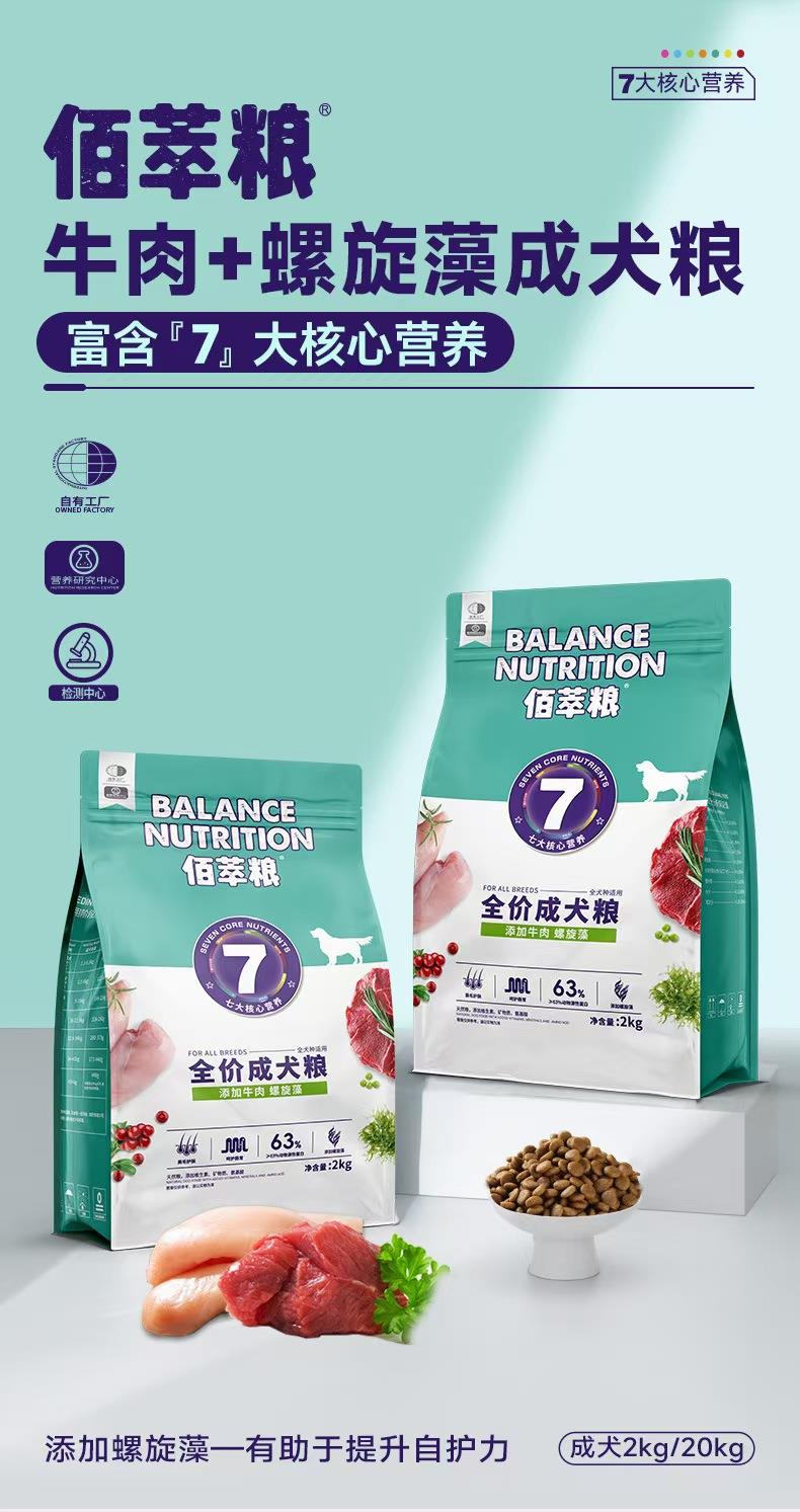 主要原料:该犬粮采用牛肉加螺旋藻的配方设计,牛肉作为主要蛋白质来源,口感细腻,能为狗狗提供充足的能量;螺旋藻则是一种营养价值极高的超级食物,含有丰富的藻蓝蛋白,有助于增强狗狗的抵抗力。