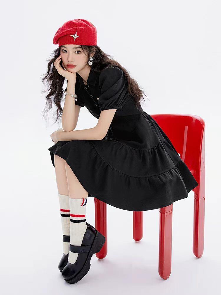 连衣裙女2024夏季新款甜美高级气质法式洋气小黑裙长裙子