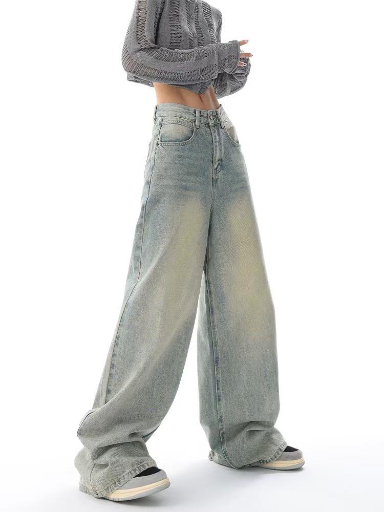 秋冬新款复古加绒牛仔裤女美式宽松设计拖地阔腿裤裤子