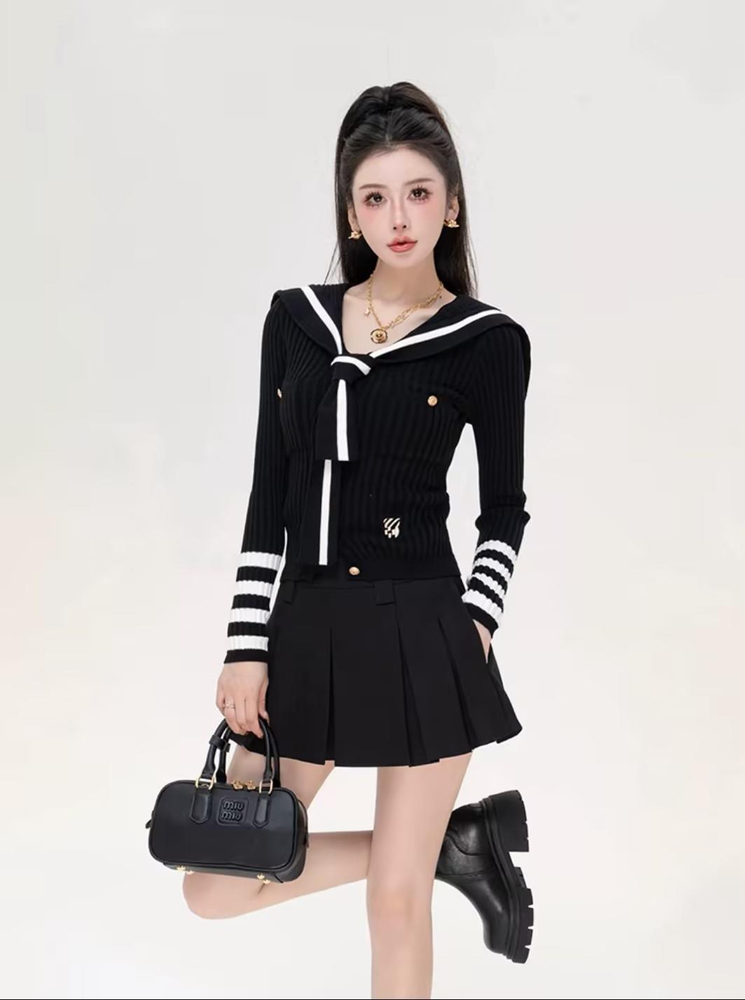 显瘦的剪裁版型 让你的身形在无形中得到优化海军领hin有学院风 拉长脖颈 凸显颈部线条