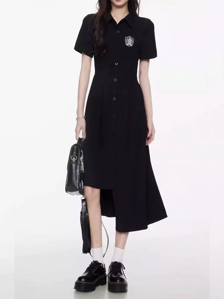春季韩版校园风POLO短袖连衣裙女小个子设计感不规则下摆