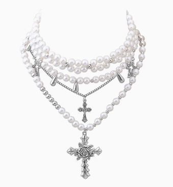 动漫周边 > 服饰 > FANTAI珍珠十字架多层项链女轻奢小众设计重工时尚新款甜酷毛衣链