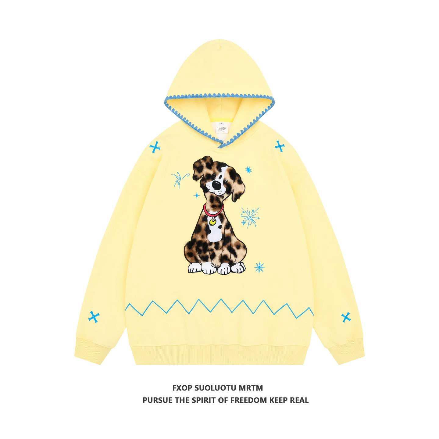 FXOP国潮美式毛绒刺绣斑点狗连帽卫衣男春秋新款宽松情侣外套