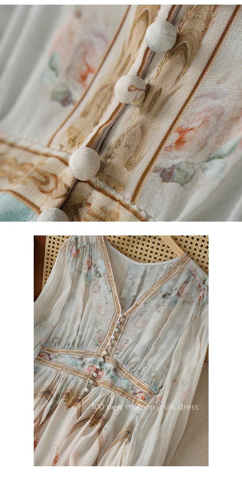 动漫周边 > 服饰 > 轻奢高级桑蚕丝印花真丝长袖修身v领长款连衣裙