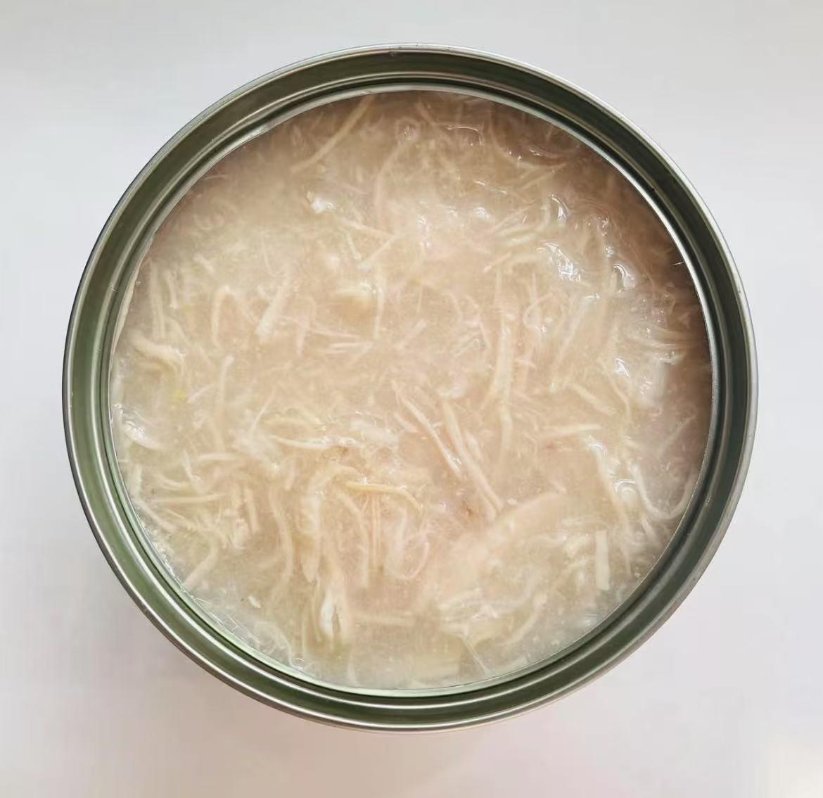 本产品是专为猫咪设计的,复函糖水的猫食品,常用于给猫咪补充水分,原料为金枪鱼和鸡胸肉,结合高蛋白,富含dna