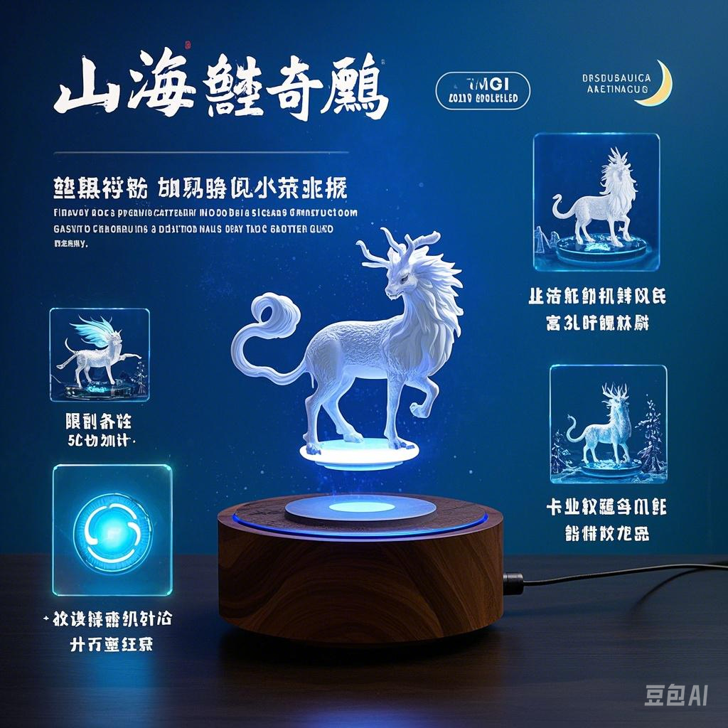将《山海经》神兽(如白泽、毕方)制成磁悬浮摆件,通过按压底座触发360°悬浮旋转。内置压力传感器,根据按压力度不同触发不同光影特效——轻压显现祥云纹路,重压则激活神兽动态投影故事。底座采用可更换场景卡(海底/云端/森林),配套APP可记录按压次数解锁AR神话剧情。