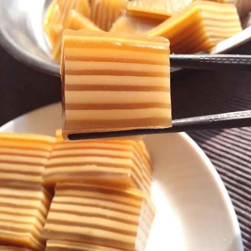 精选优质马蹄,历经多道工序,精心熬制而成。糕体晶莹剔透,呈半透明状,泛着淡淡的米黄色光泽,恰似一件精美的艺术品,让人未品尝就已心生向往。轻轻掰开,可见其中镶嵌着的马蹄碎,颗颗分明,散发着清新自然的气息。
