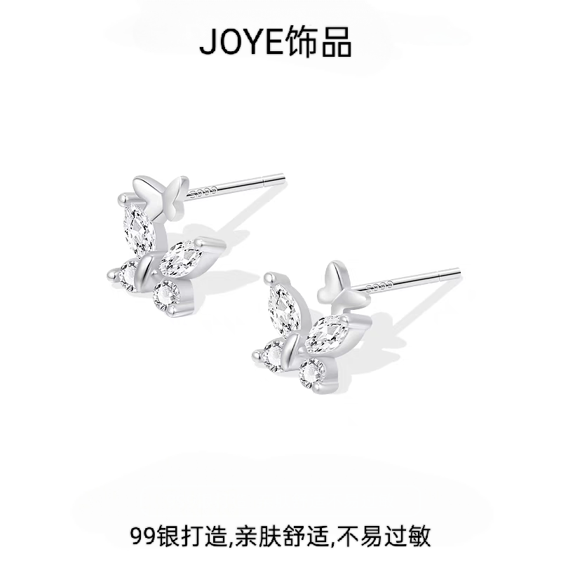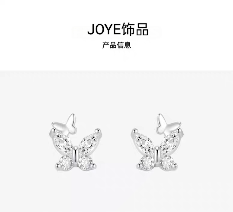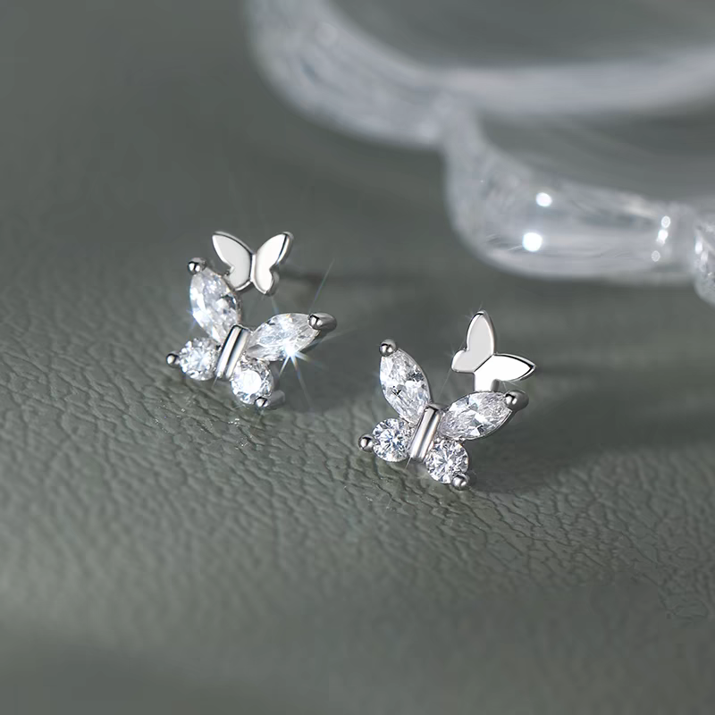 锆石镶边蝴蝶耳钉(5A 锆石,爆闪效果)