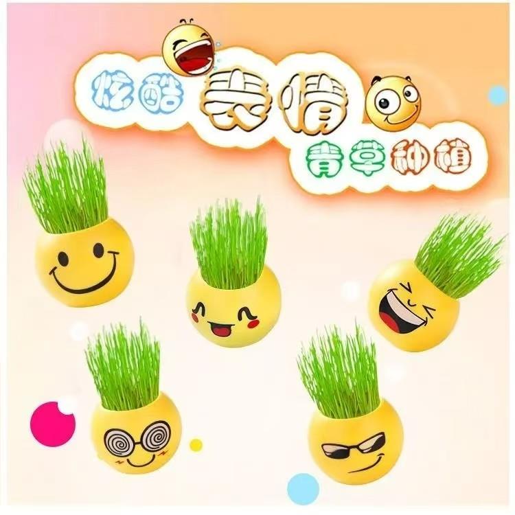 浇水长草植物娃娃农盆栽植物学生迷你可爱长草娃娃草头笑脸花盆