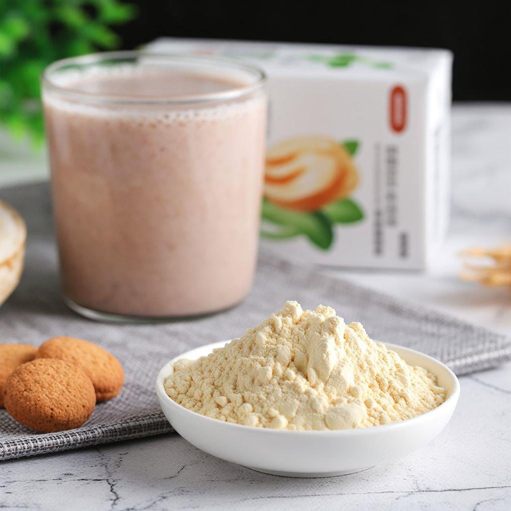 产品特点:以速溶植物蛋白粉为基础,添加膳食纤维、维生素及天然风味剂,制成可直接冲泡的代餐饮品。其优势在于高蛋白吸收率与低热量配方,适合健身人群和代餐需求者。