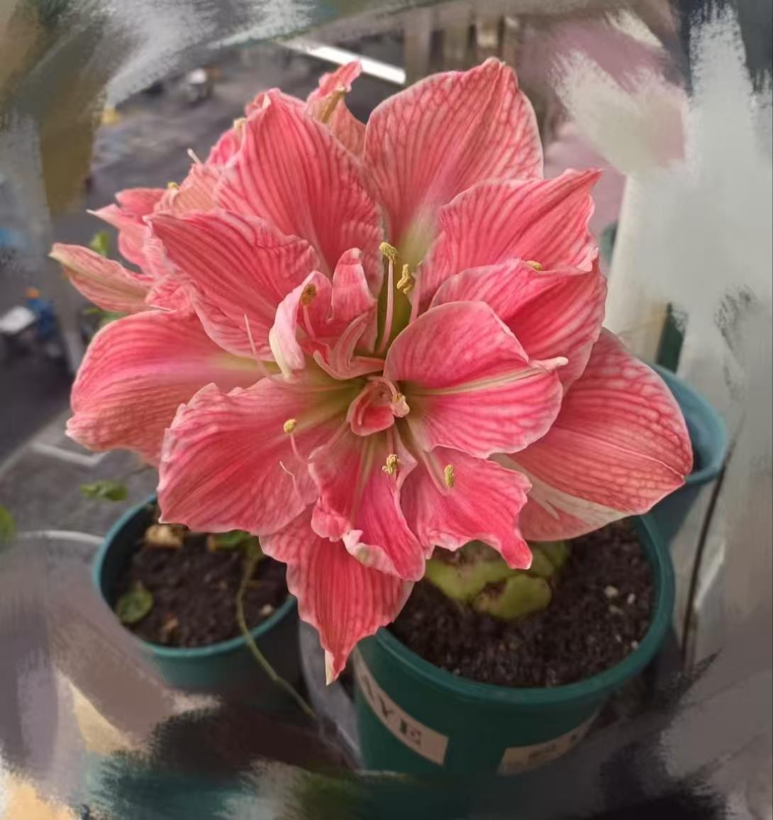 当一抹炽烈的红在窗台悄然绽放,朱顶红便以它独有的优雅与热烈,点亮了整个空间。朱顶红又名柱顶红、孤梃花,其花型大气磅礴,单朵花径可达 10-15 厘米,花瓣层层舒展,如同精雕细琢的丝绸,色泽浓郁饱满,从娇艳欲滴的中国红到梦幻柔美的粉白渐变,每一种色彩都令人惊艳。盛开时,花葶挺立,顶端绽放 2-6 朵花,宛如优雅的舞者在枝头翩翩起舞,极具观赏性。