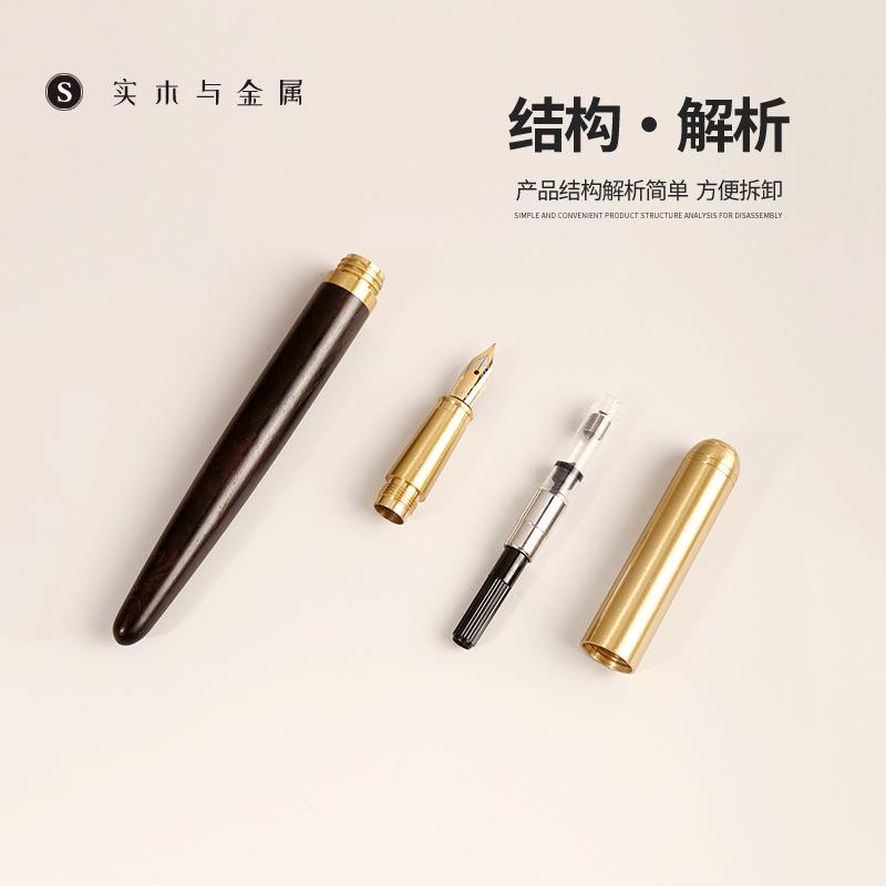 采用铜、黄铜、不锈钢等金属搭配实木,如红酸枝木、黑檀木、红花梨木等。金属部分经过抛光、磨砂、氧化等处理,呈现出复古的光泽和质感;木材纹理自然独特,每一支钢笔都独一无二,随着使用时间的推移,木材会逐渐产生包浆,变得更加温润有质感
