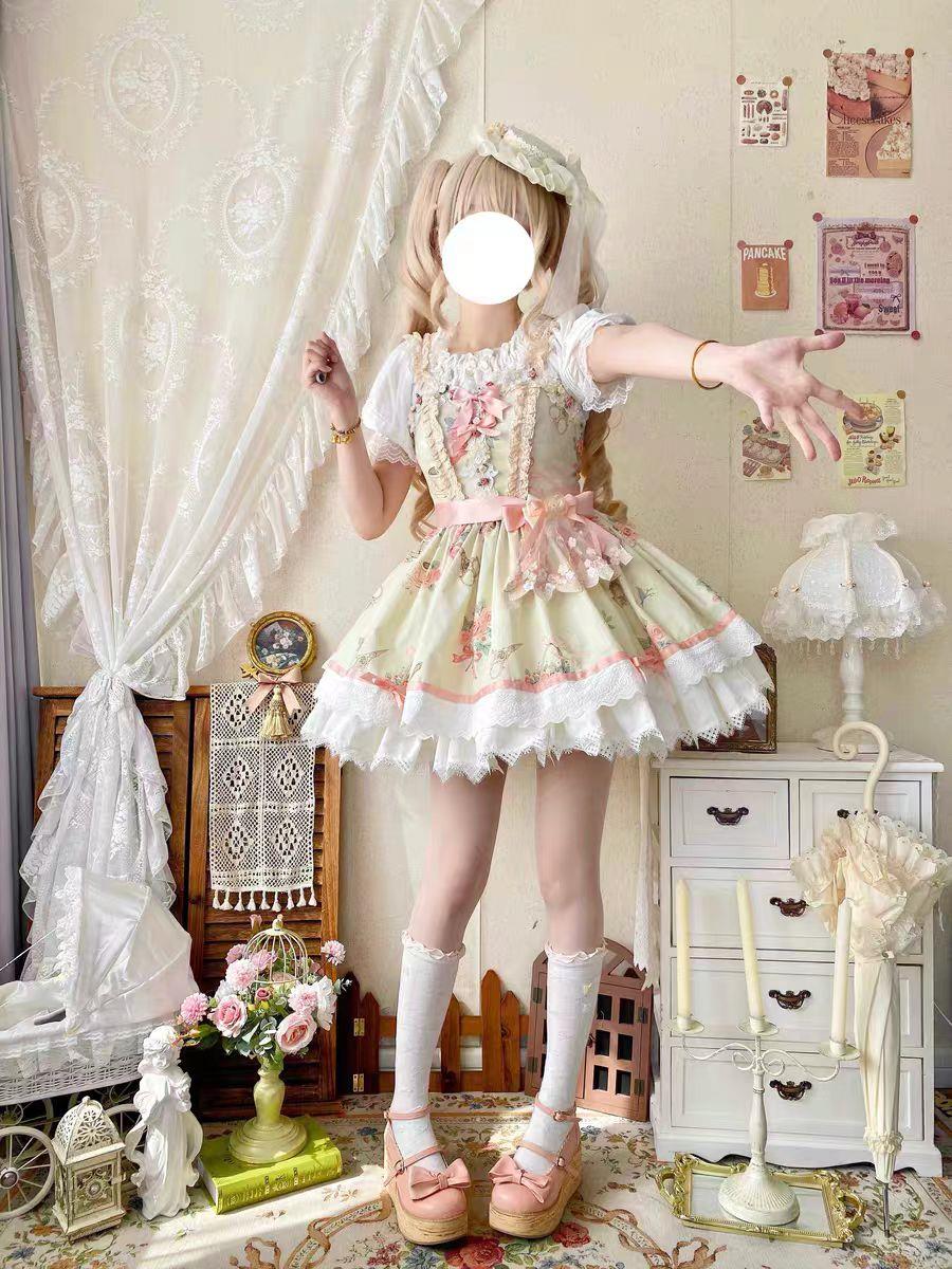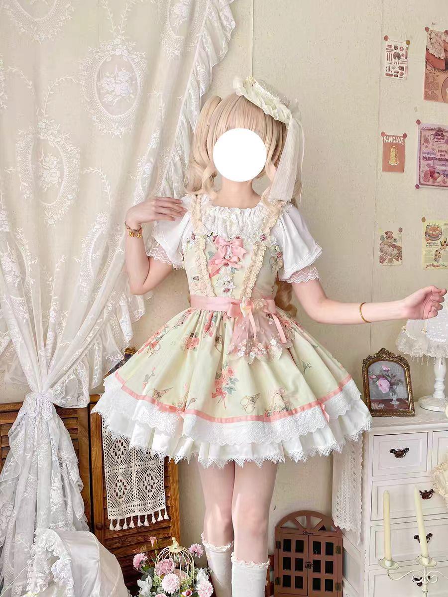动漫周边 > 服饰 > 【晨曦玫瑰】千木原创夏季印花吊带lolita大摆doll洛丽塔短裙全款