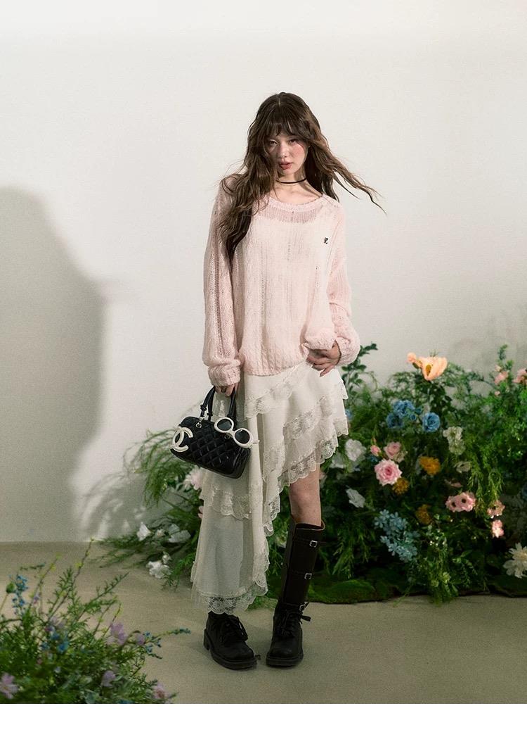 纸片人:绑带松垮穿+多层裙摆=纯欲风。