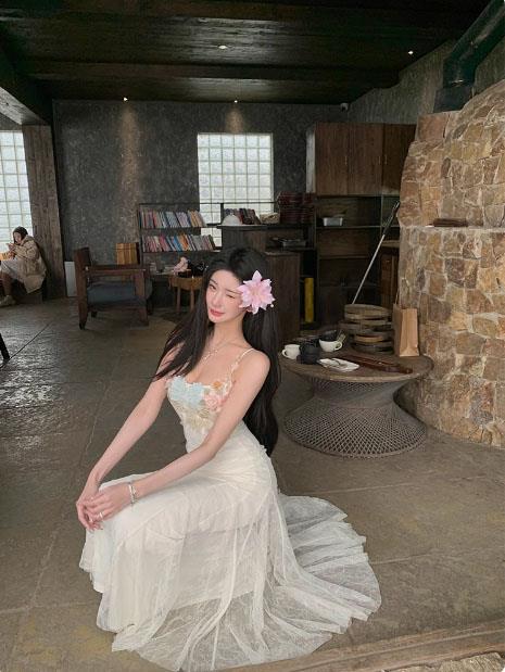 动漫周边 > 服饰 > 立体花朵吊带连衣裙初夏穿搭节日出游掐腰网纱鱼尾长裙