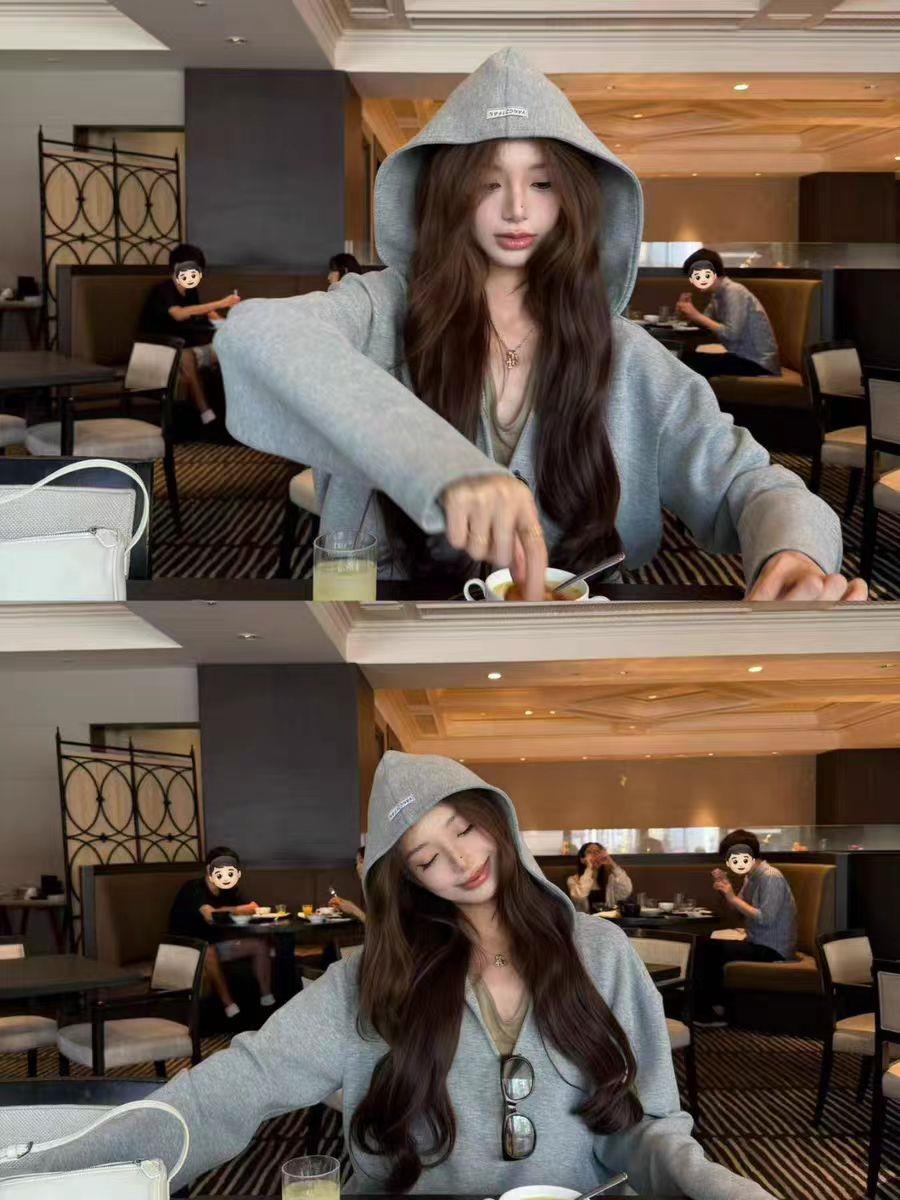 糯糯系列云朵空气卫衣 慵懒大V领连帽卫衣双口袋上衣女