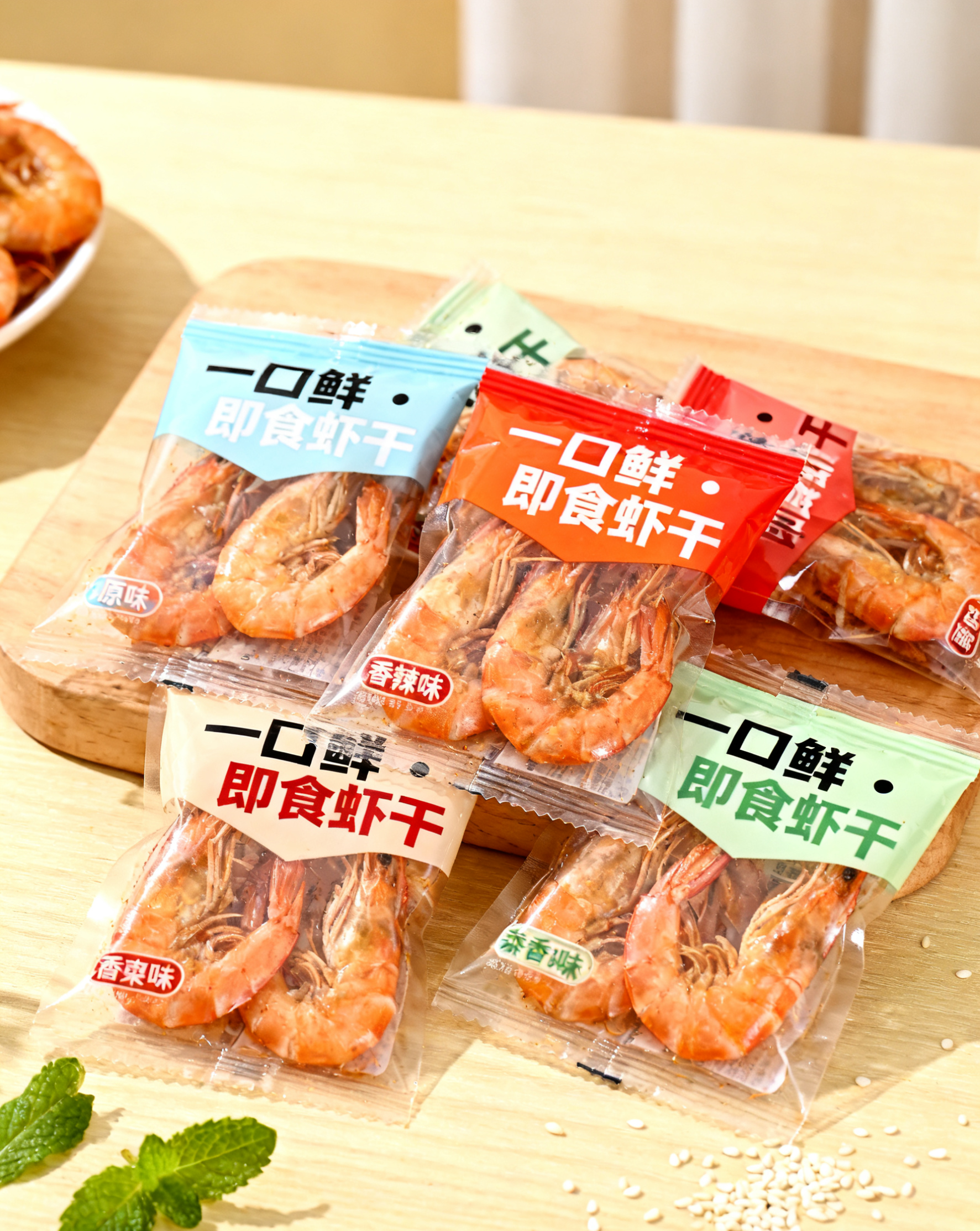 即食:许多虾干如赶海弟即食烤虾干、蝶岛海歌经典九节虾干等,干度适中,壳肉分离,可直接食用,是美味的休闲零食。