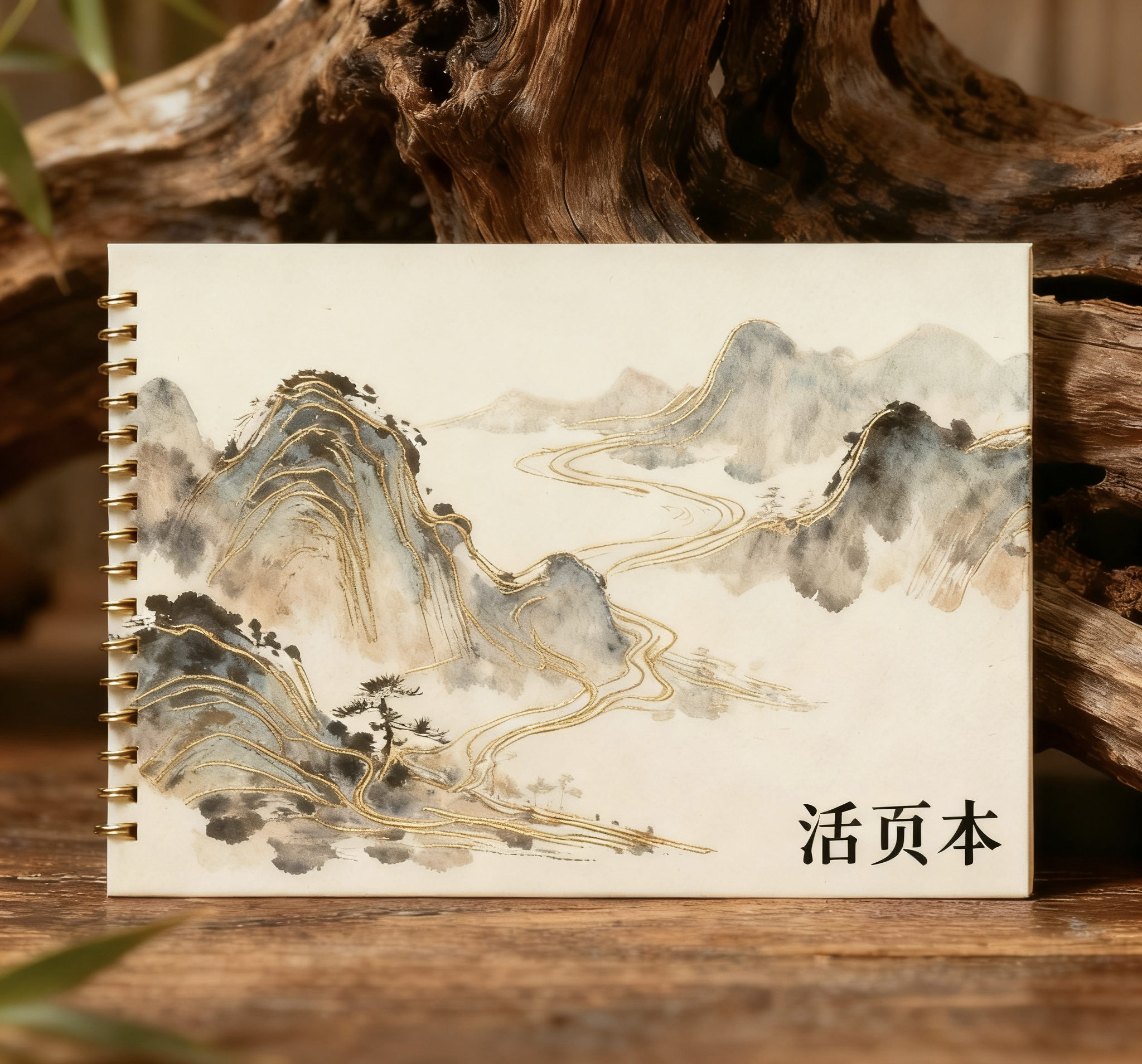 1、设计风格:以中式水墨山水画为核心视觉,叠加烫金工艺勾勒山峦、水流线条,融合传统山水的“意境感”与现代装饰的精致感,封面色调雅致,兼具古典美学与轻奢质感。