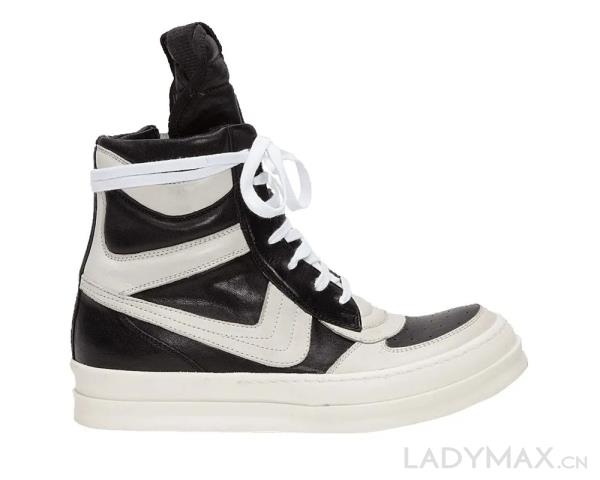 标志性元素:鞋身采用黑白拼色 + 大钩子(类似倒三角)的视觉设计,搭配高帮靴型,自带街头 “暗黑感”,辨识度极高;