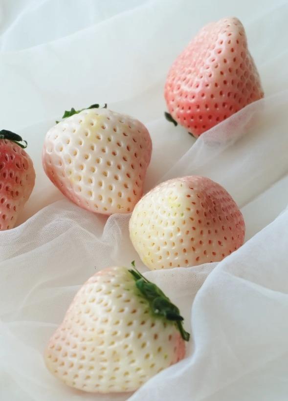果实长圆锥形,外表颜色浅淡,为淡粉色,接近白色,是佐贺清香草莓的变异品种,香气浓郁,含糖量高,甜味大,口感好。