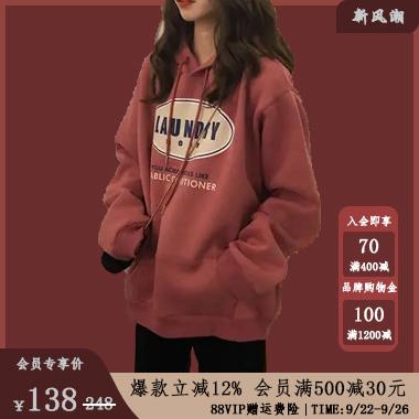 胸前的“LAUNDRY”字母印花做了做旧设计,慵懒又有细节感;连帽抽绳+落肩版型,对各种身材都很包容,日常通勤、休闲出街都能穿~面料是加绒款(但不会显臃肿),贴肤软乎乎的,降温天穿刚好!